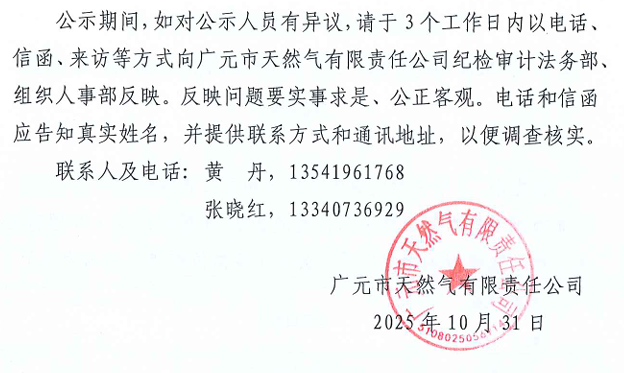 广元市天然气有限责任公司关于2025年度第二次公开招聘拟录用人员的 公示