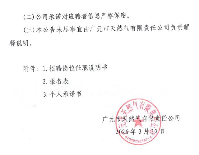 广元市天然气有限责任公司2026年度第一次公开招聘的公告